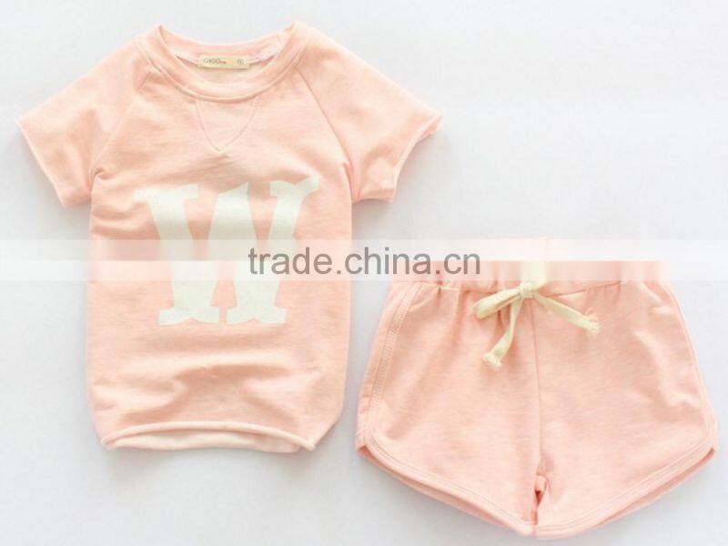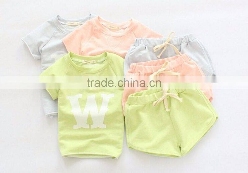 Wholesale Childrens clothing set W alphabet bamboo cotton short t-shirt with hot shorts 2pcs suits for girl
