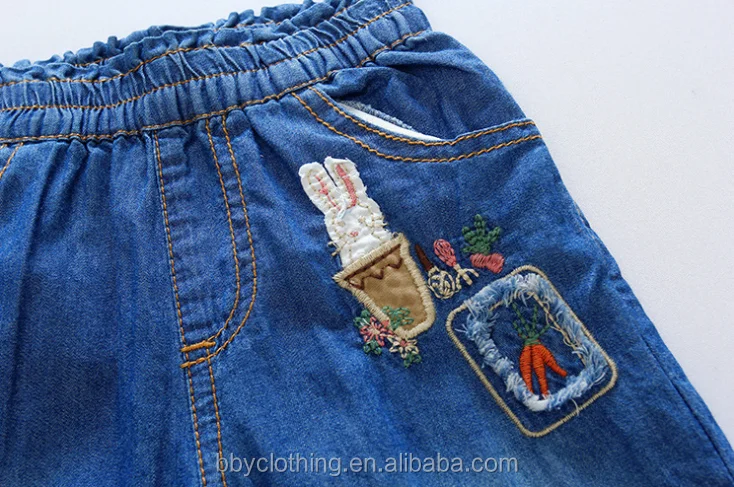 2016 New Design Soft Hand Feeling Applique of Animal Long Jeans for Baby Girl