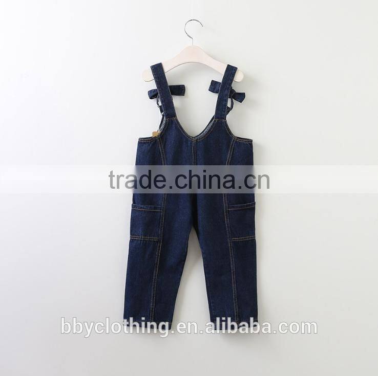 2017 Wholesale kids denim overalls fancy girls jeans pants suspenders suit