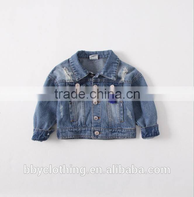 2017 Hight quality Girls beautiful tassels denim coat on the two front procket