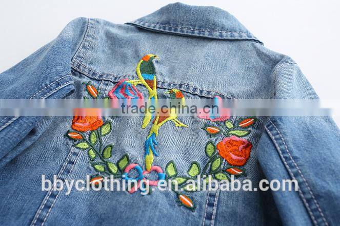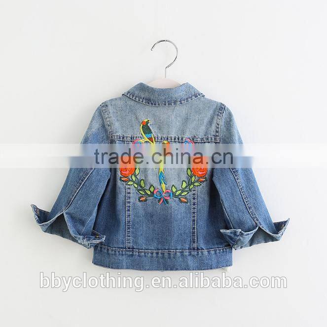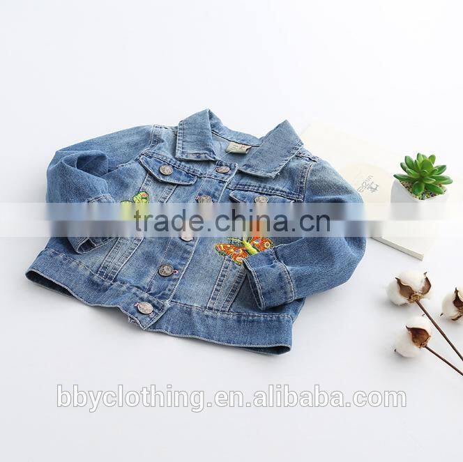 2017 Spring baby girls denim outdoor wear coat with butterfly embroidered