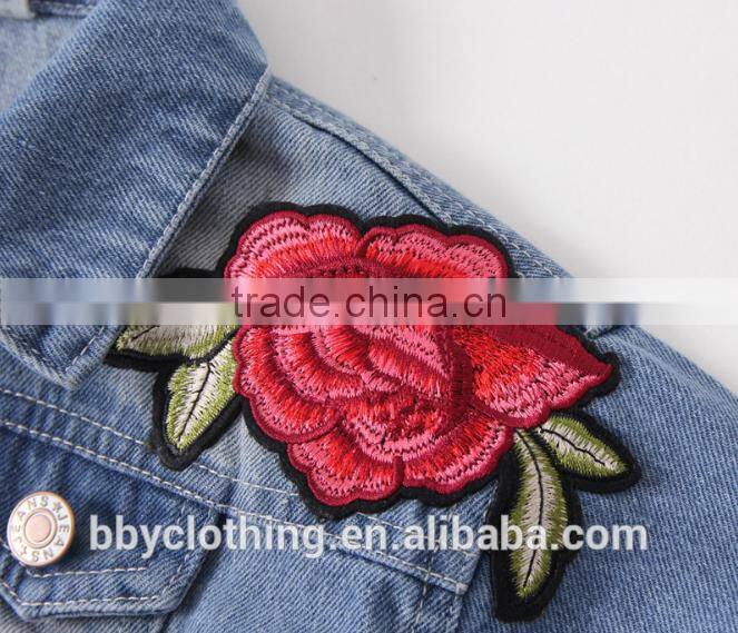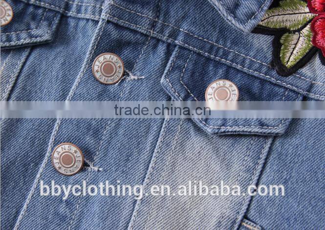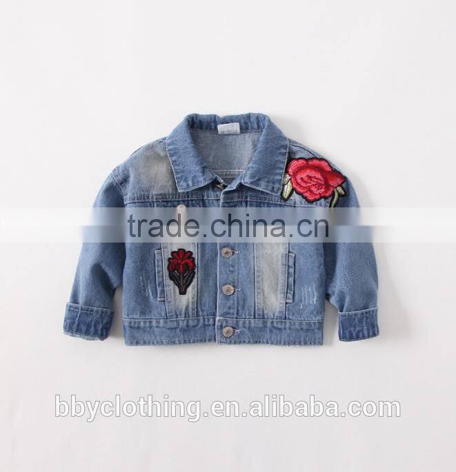 2017 Vintage kids denim jacket with big flower embroidery suit 2-7 years girls
