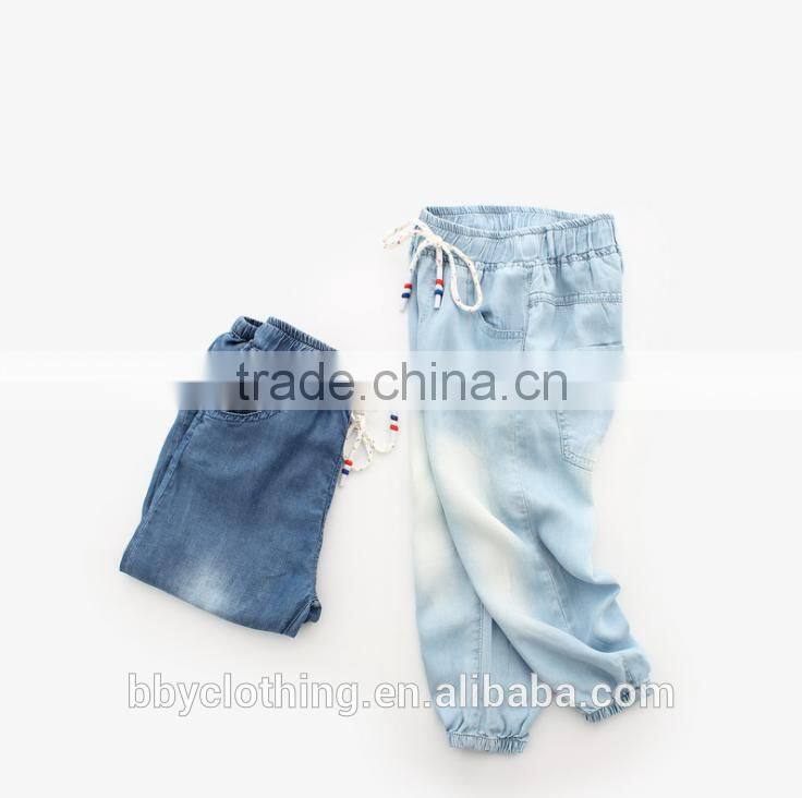 Jeans supplier in China low price 100% lyocell kids jeans wear with elastic leg opening