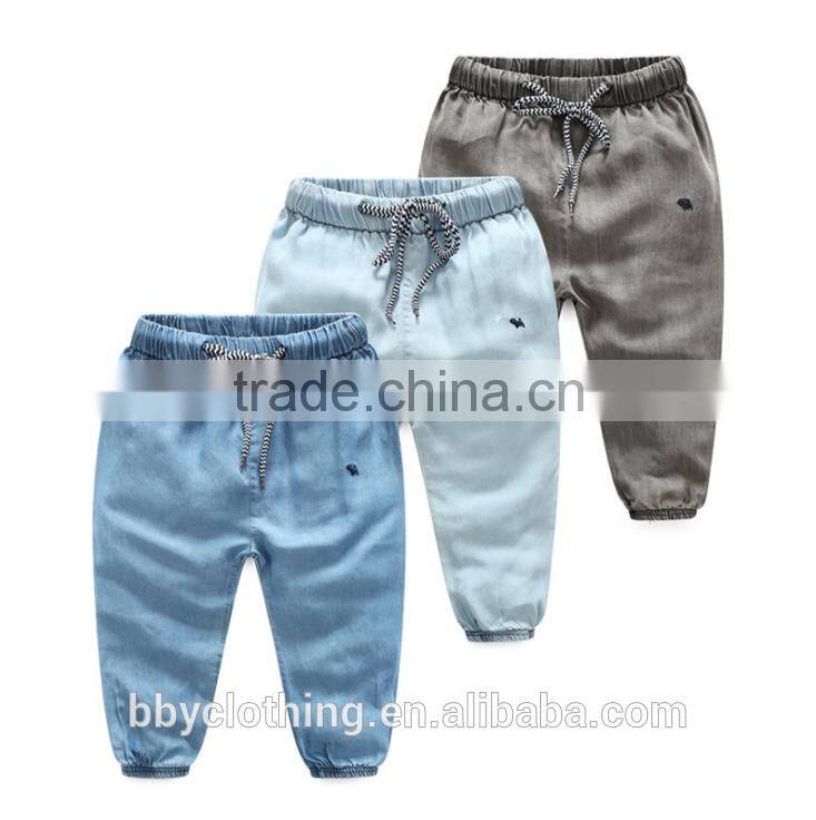 Hottest summer cotton long denim pants boys jeans 2017 with embroidery