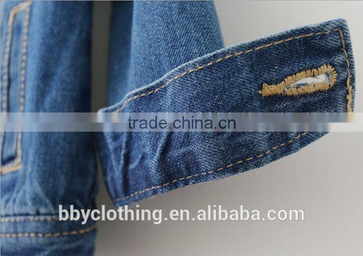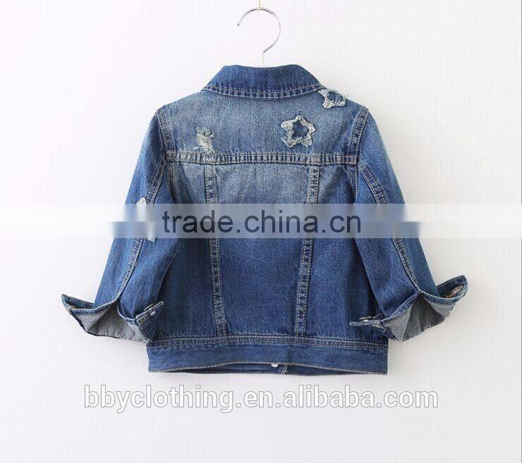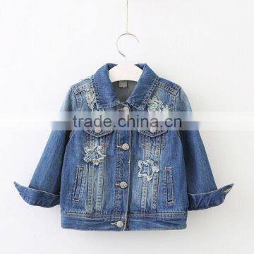 Hot sale Boutique girl clothing ripped turndown denim outerwear