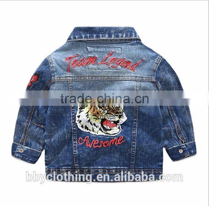 Fashion embroidered outerwear kids boys denim jackets in china