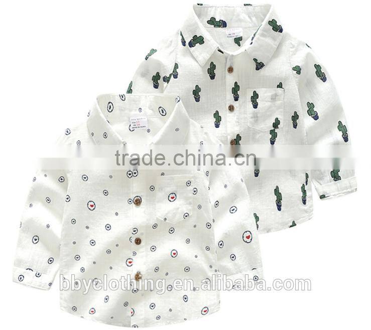 Populer kids boys cactus heart-shaped print cotton and linen shirt