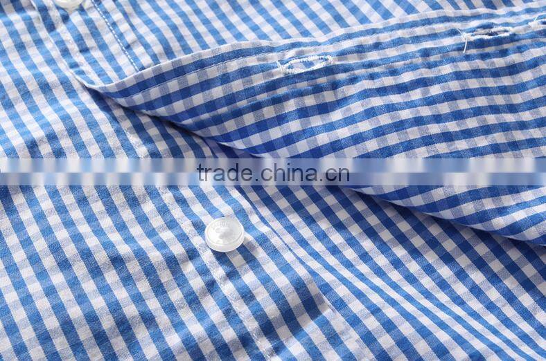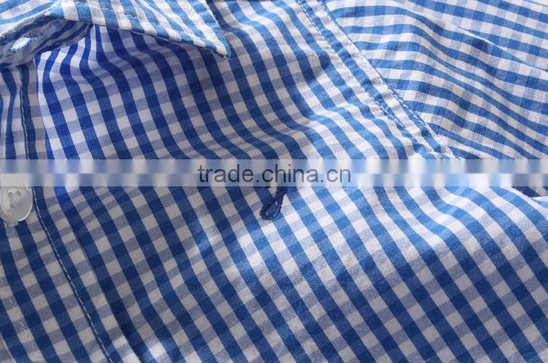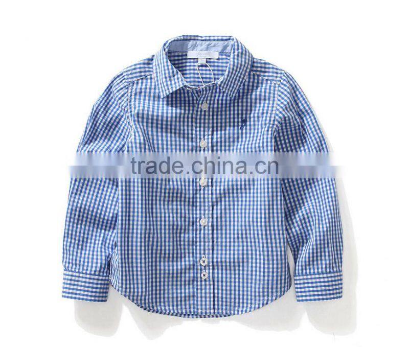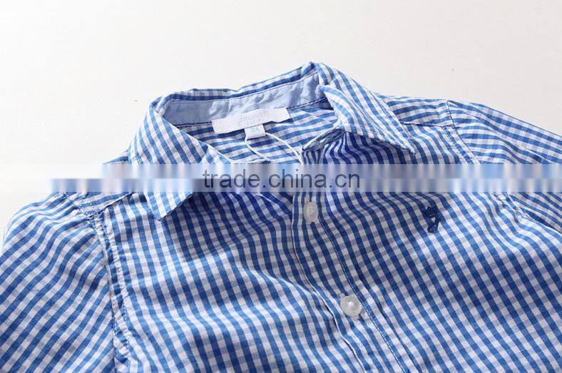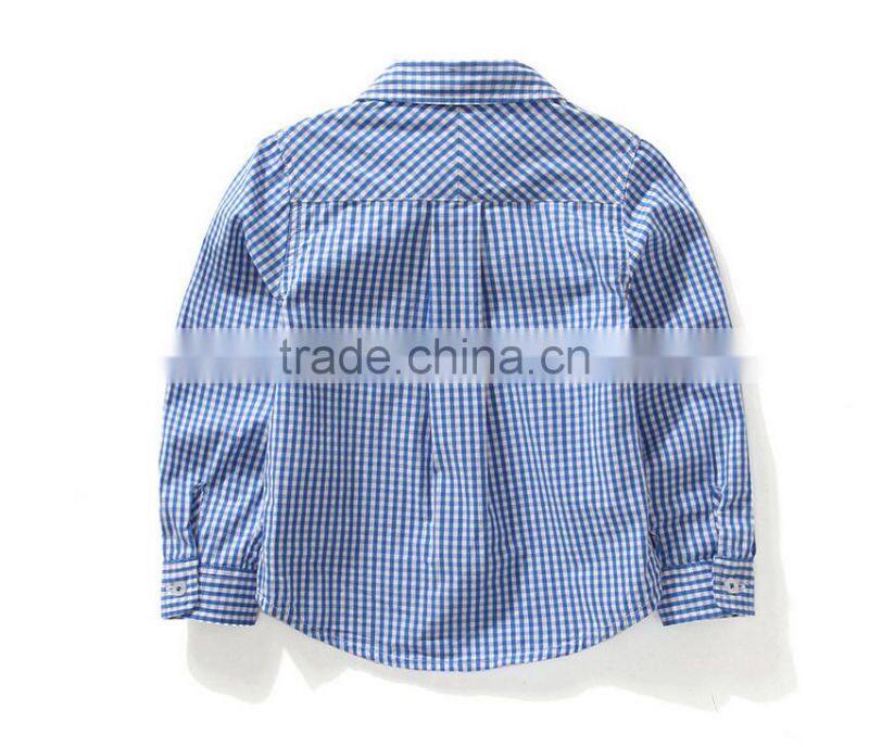 Bulk baby boys girls t shirts blue grid long sleeve cotton shirts for 3-12 years