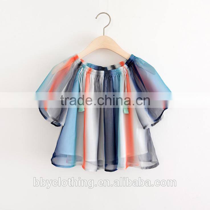 Home > Products > Kids Shirt/Blouse > 2017 Latest Girls Chiffon Tops With Colored Stripe