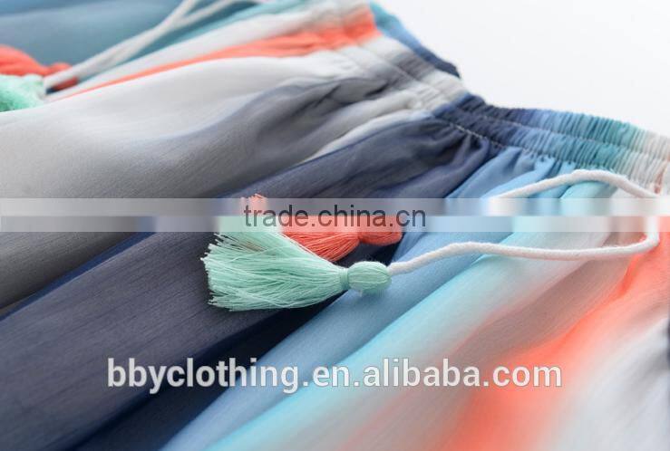 2017 Latest Girls Chiffon Tops With Colored Stripe