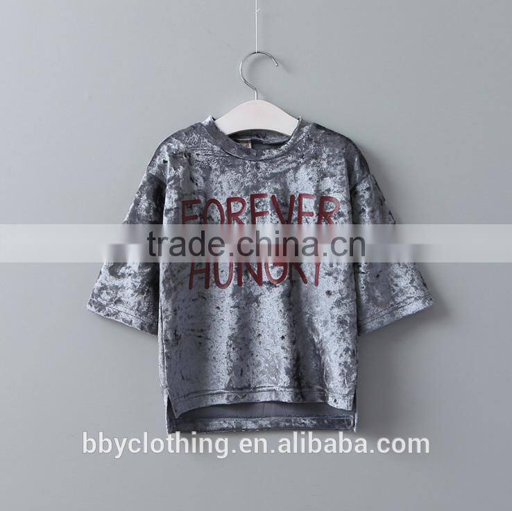 2017 Girls pullover velvet short sleeve t shirt childrens plain hip hop T-shirt