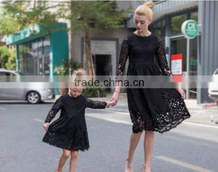 Home > Products > Mother and daughter > Ready Sale 2017 Girl Child Women Matching Dress Lace Hollow Out Long Sleeve Dresses