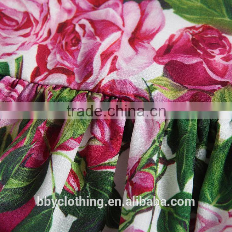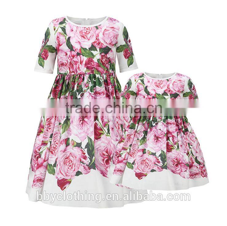 2017 Wholesale rose printed family mother and daughter fitted dress