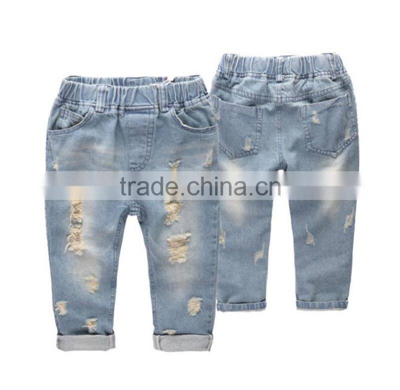 Boy New Model Pants Jeans 2017 Pure Color Hole in Leggings