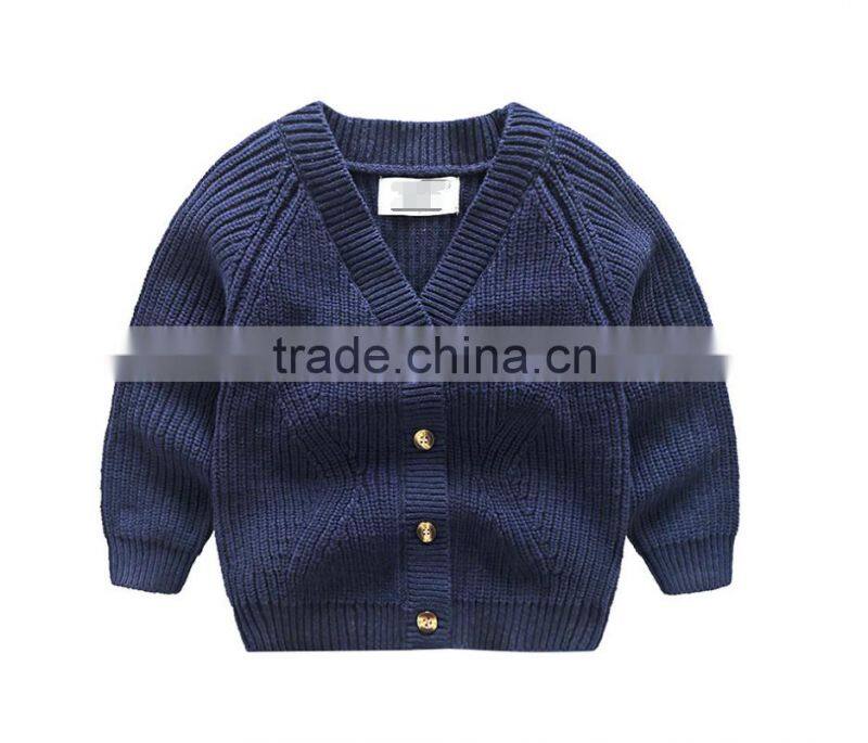 Wholesale Navy Blue Color v Neck Cotton Babies Knitting Sweater Designs