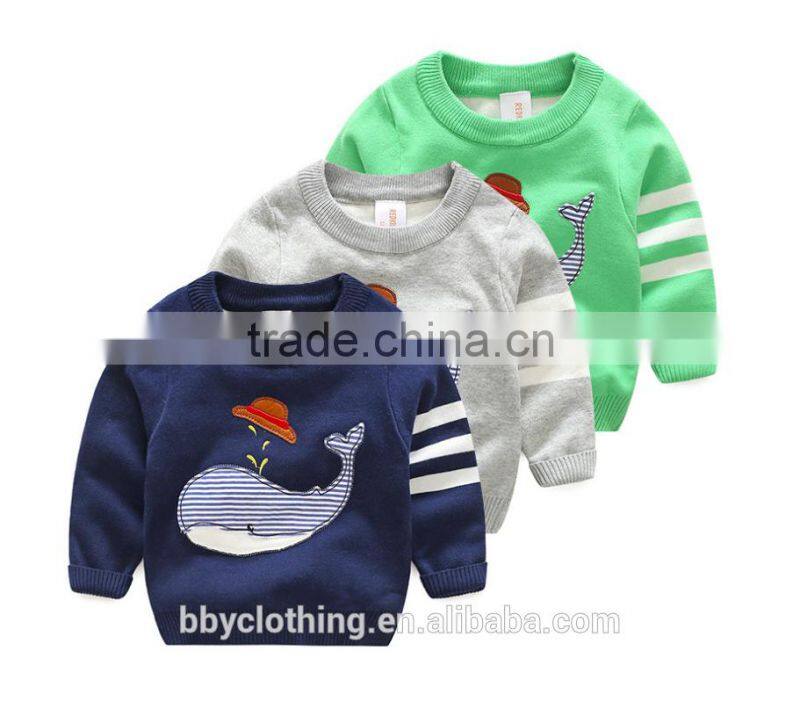 Hot new design appliqued shark pattern pullover baby sweaters custom
