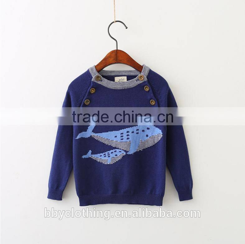 Hot New Design Appliqued Shark Pattern Pullover Baby Sweaters Custom