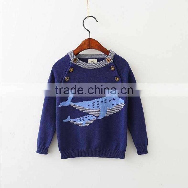 Hot Knitted Patchwork Whale Pattern Round Collar Children Sweater of High Quality