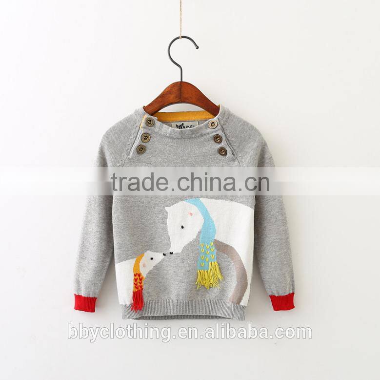New Design Baby Girl Knit Sweater Cute White Bear Unisex Kid Pullover Sweatshirt