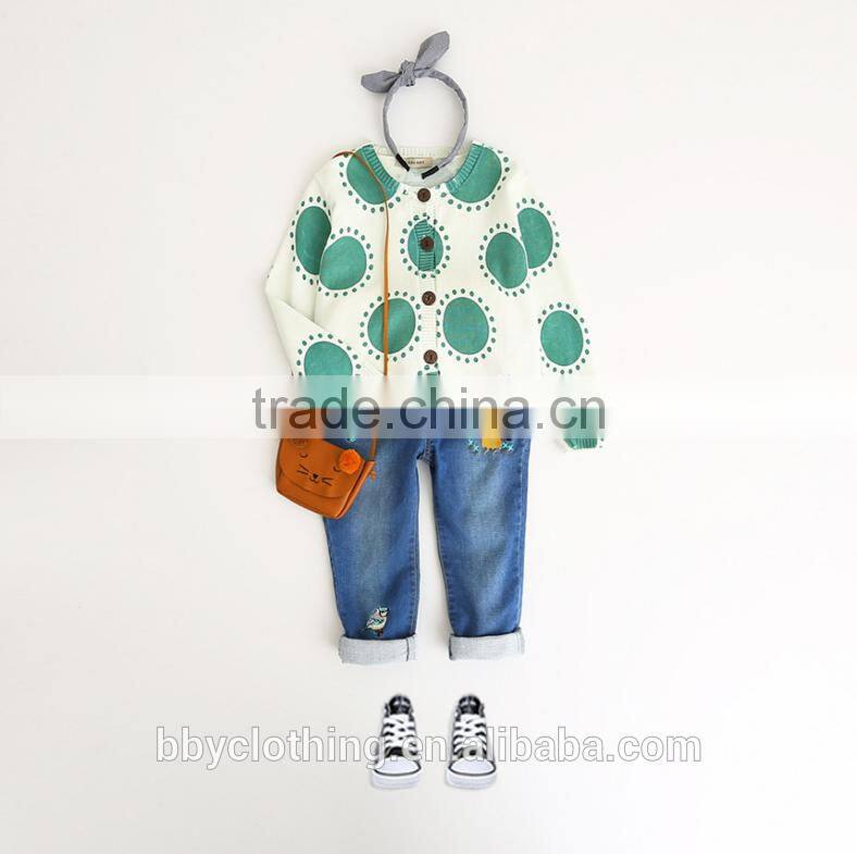 Home > Products > Sweater&Cardigan > Top Quality Cotton Material Knit Kids Long Sleeve Sweater With Big Polka Dot
