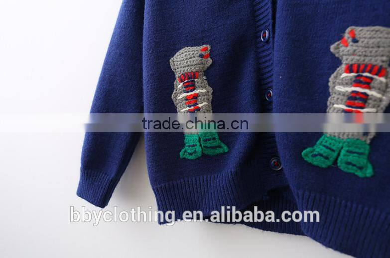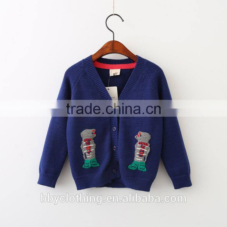 Wholesale Navy Blue Color v Neck Cotton Babies Knitting Sweater Designs