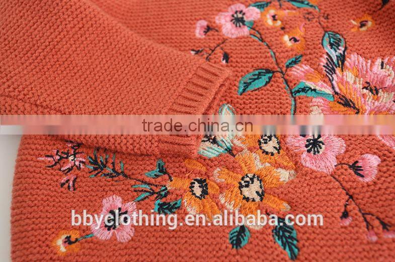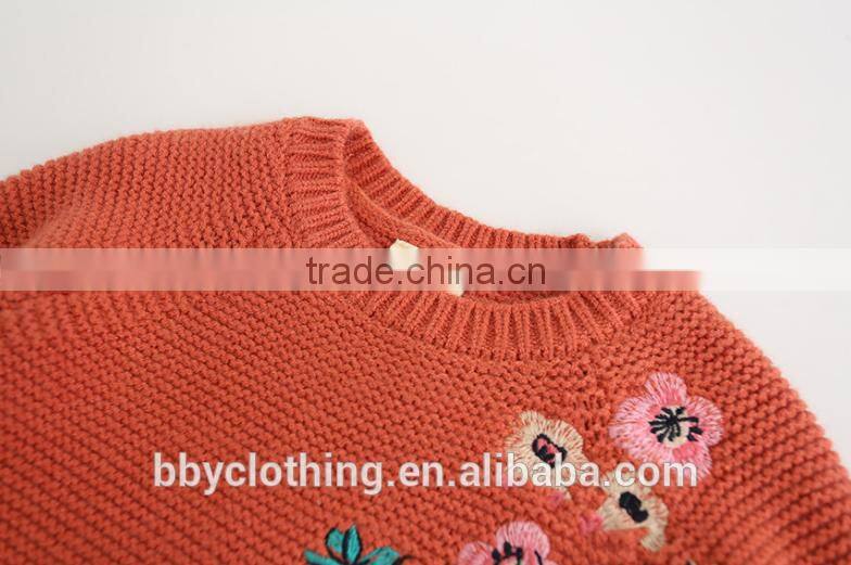 Fashion Kid Girls Rose Embroidery Short Kintted Sweater for Autumn