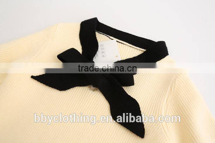 Wholesale Chinese Winter Clothes Kids Striped Cropped Pullover Sweaters With Bowknot
