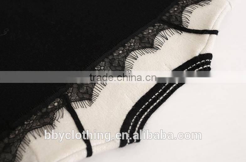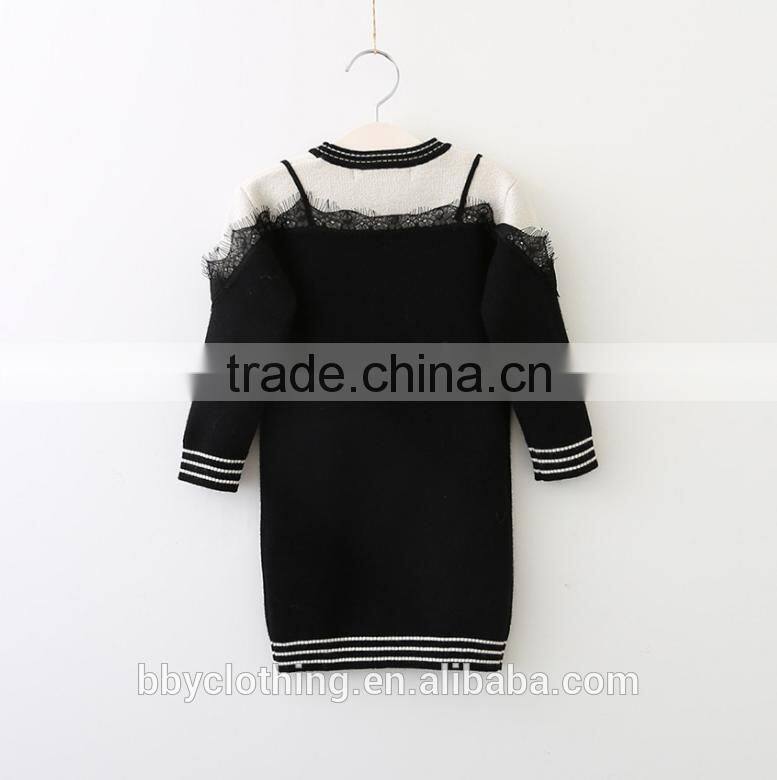 High Quality Child Elegant White Black Patchwork Long Sweater With Lace