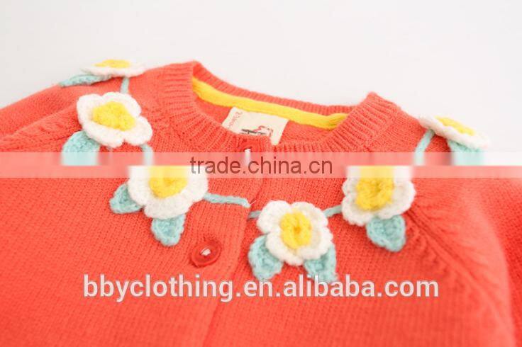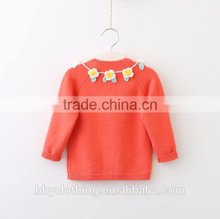 Cheap Price Kids Wear Cardigan Girls Orange Color Knitted Sweaters With Hook