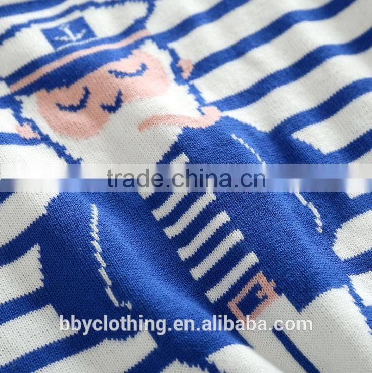 Wholesale Boys Blue White Striped Knitted Sweaters With Jacquard Patterns