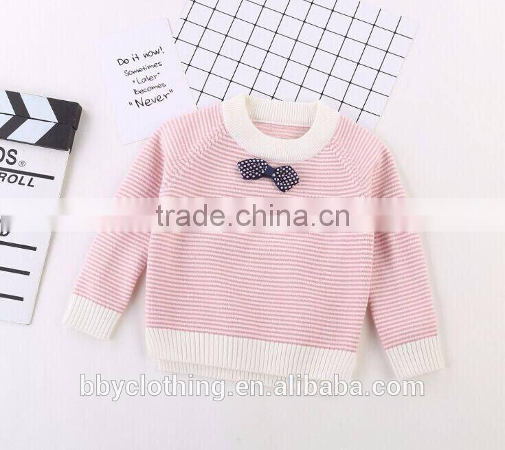 Home > Products > Sweater&Cardigan > Wholesale Chinese Winter Clothes Kids Striped Cropped Pullover Sweaters With Bowknot