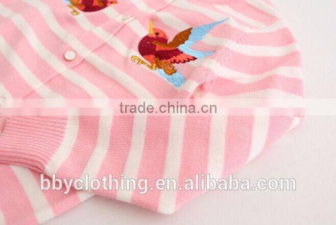 Grey and White Striped Baby Girl Raglan Sleeve Cardigan Design for Autumn