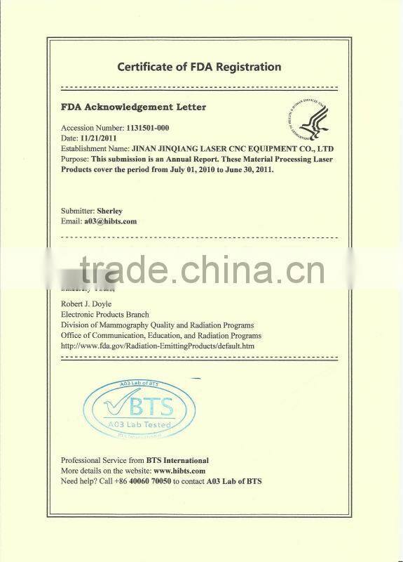 Jinan JinQiang Laser CNC Equipment Co.,Ltd was established in 2006, it is lacated in the beautiful "Spring City"--Jinan. It is one of the most infiuential laser equipment manufacturer in China.