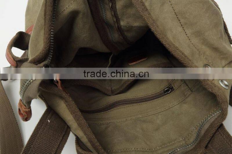 Home > Products > Canvas Bag > Unisex Vintage Casual Cotton Canvas Leather Backpack Rucksack Hand Bag Bookbag ,Lagtop Bag,Travel Bag,Day Bag, Computer Bag For