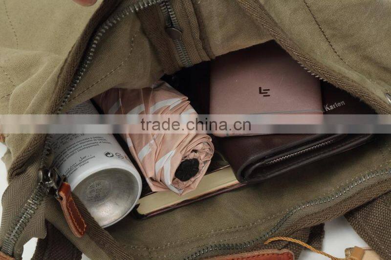 Unisex,Vintage Casual Cotton Canvas Leather Haversack Messenger Bag Courier Bag Haversack, Bookbag ,Shoulder Bag For Men & Women