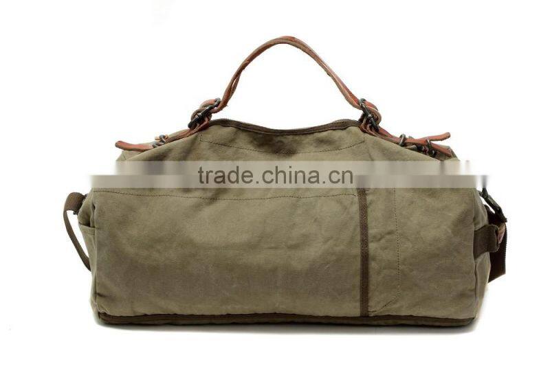 Unisex Vintage Casual Cotton Canvas Leather Shoulder Bag Weekend Bag Duffle Bag Travel Overnight Bag For Man & Women