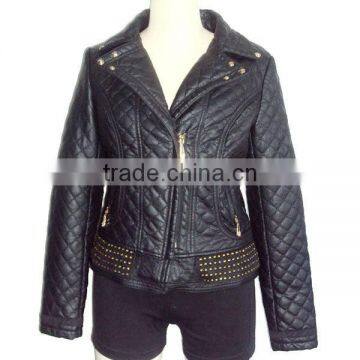 Hot sell studded quilted padded leather clothing , winter jacket in leather for lady