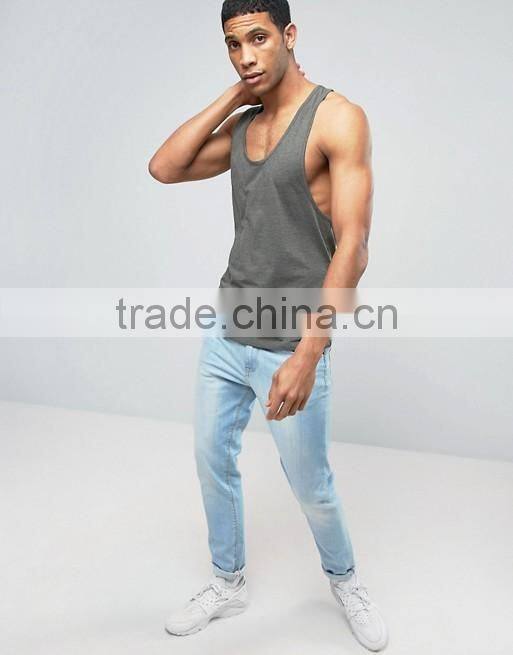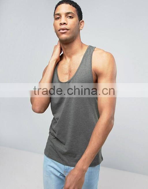 2017 Cheapest Wholesale High Quality Summer Custom Grey Gym Wear Comfortable Cotton Spandex Casual Men's Sport Tank Tops