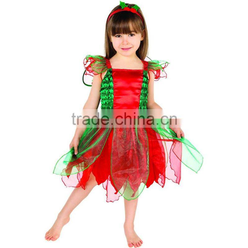 Red And Green Flower Style Girls Christmas Fancy Dress