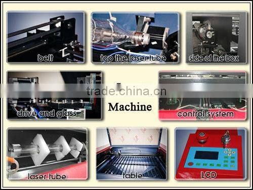 This machine can engrave all kinds of nonmetal material (density board, bamboo and wood articles; double-colored board, cloth, Acrylic, leather, glass, organic glass, crystal, and so on).
