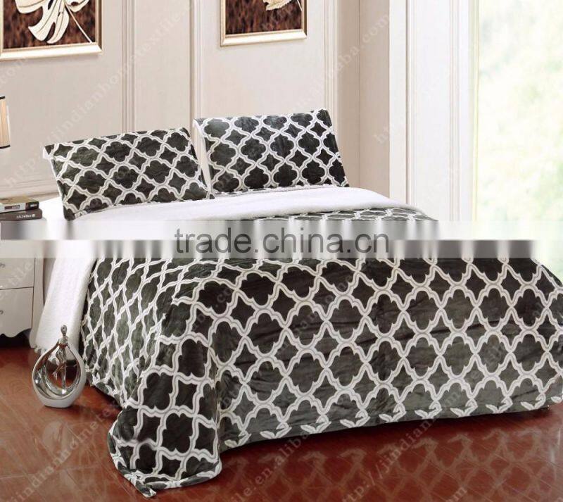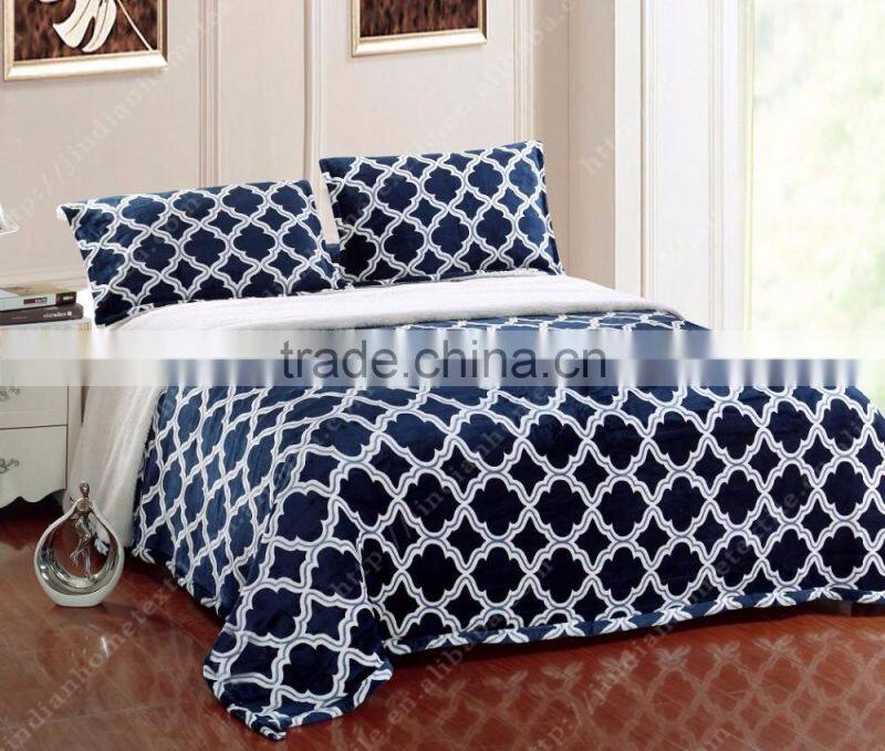 Home > Products > Comforter > 100% Polyester Hand Made Flannel Fleece Quilt Pillow Cover Bed Sets Printing Design