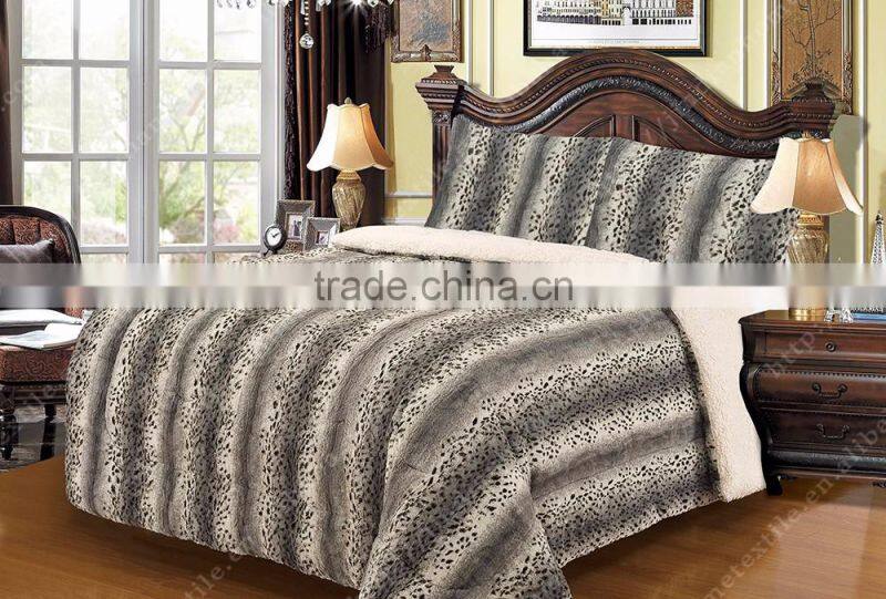Home > Products > Comforter > 100% Polyester Hand Made PV Fleece Quilt Pillow Cover Bed Sets Animal Fur Design