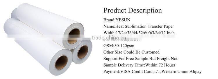 YESUN High Quality Dye Sublimation Paper Transfer Printed Paper
