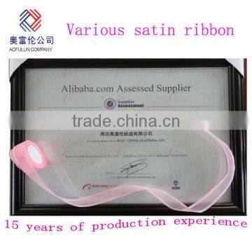 | Apply | Our ribbon widely be used in gift packaging, flower, bows, bag string, reticule cord, decorate ribbon, garment accessory, headgear, packaging material, promotion gift, mobile string, card string, printing ribbon, label, toys, shoes, home textile accessories, gown and so on . |