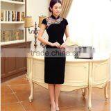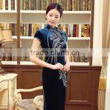 2016 Ladies High Quality Embroidered Velvet Short Sleeve Cheongsam