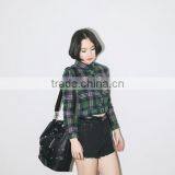 2015 Customized Short Style Green and Navy Plaid Shirt for Women