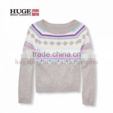 Girls Long Raglan Sleeve Fair Isle Cotton Sweater Knitting