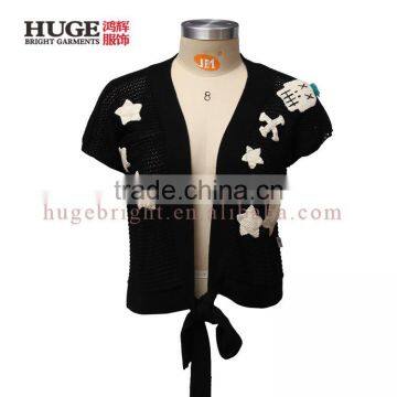 100% Cotton Hand Crocheted Sweater Black Womens Crop Top