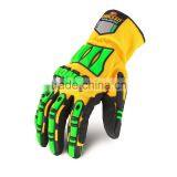 HIGH-VIS CE EN388 4232mechanic Impact Resistant Work ,Oilfield & Gas Drilling Safety Gloves, PVC Dots, Earthquake Rescue Gloves