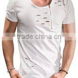 Curved Hem Blank Distressed t Shirts Mock Holes Longline Tee